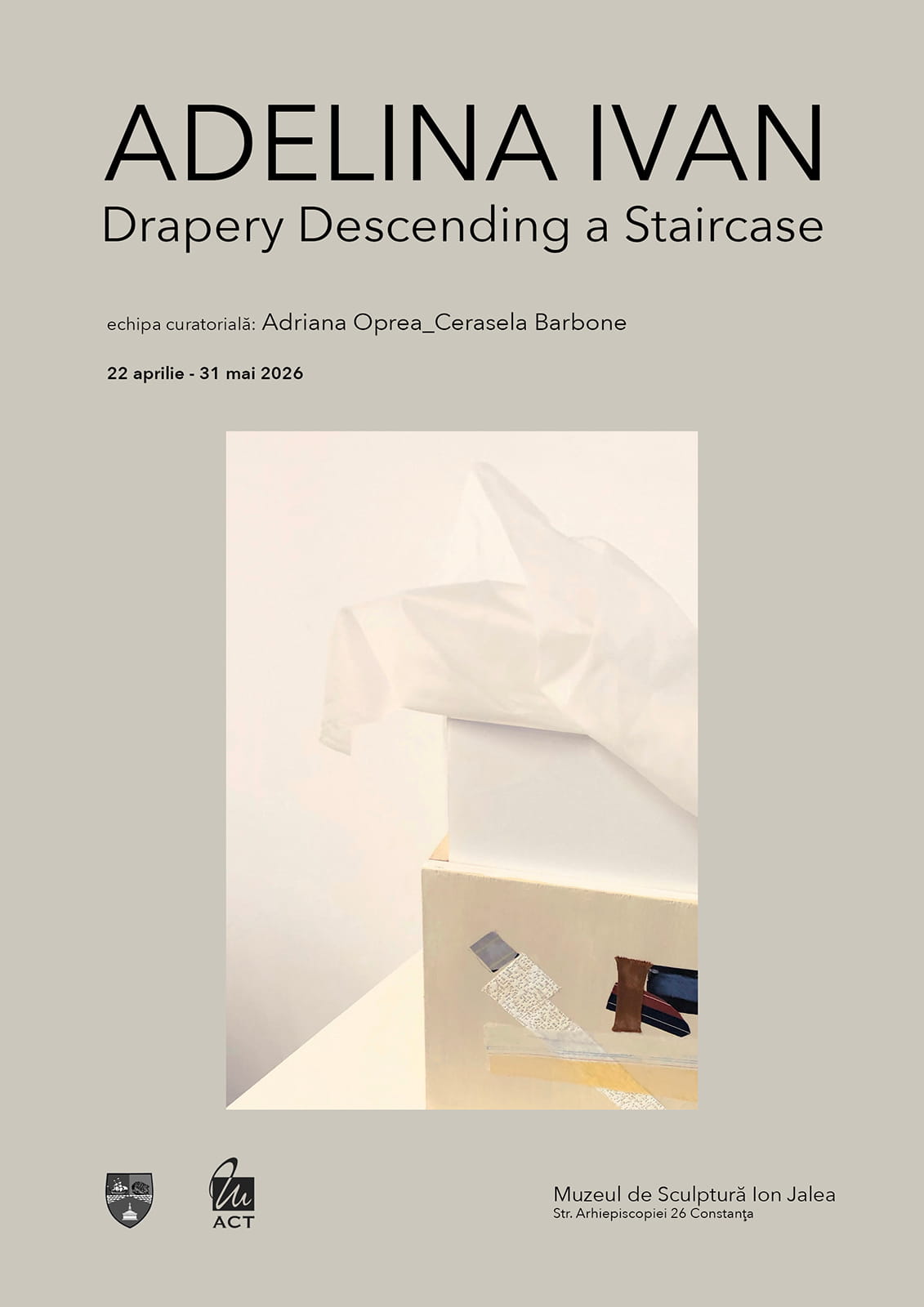 Expoziția Adelinei Ivan, găzduită de Muzeul de Sculptură Ion Jalea din Constanța, este curatoriată de Adriana Oprea și Cerasela Barbone și poate fi vizitată în perioada 22 aprilie – 31 mai 2026.